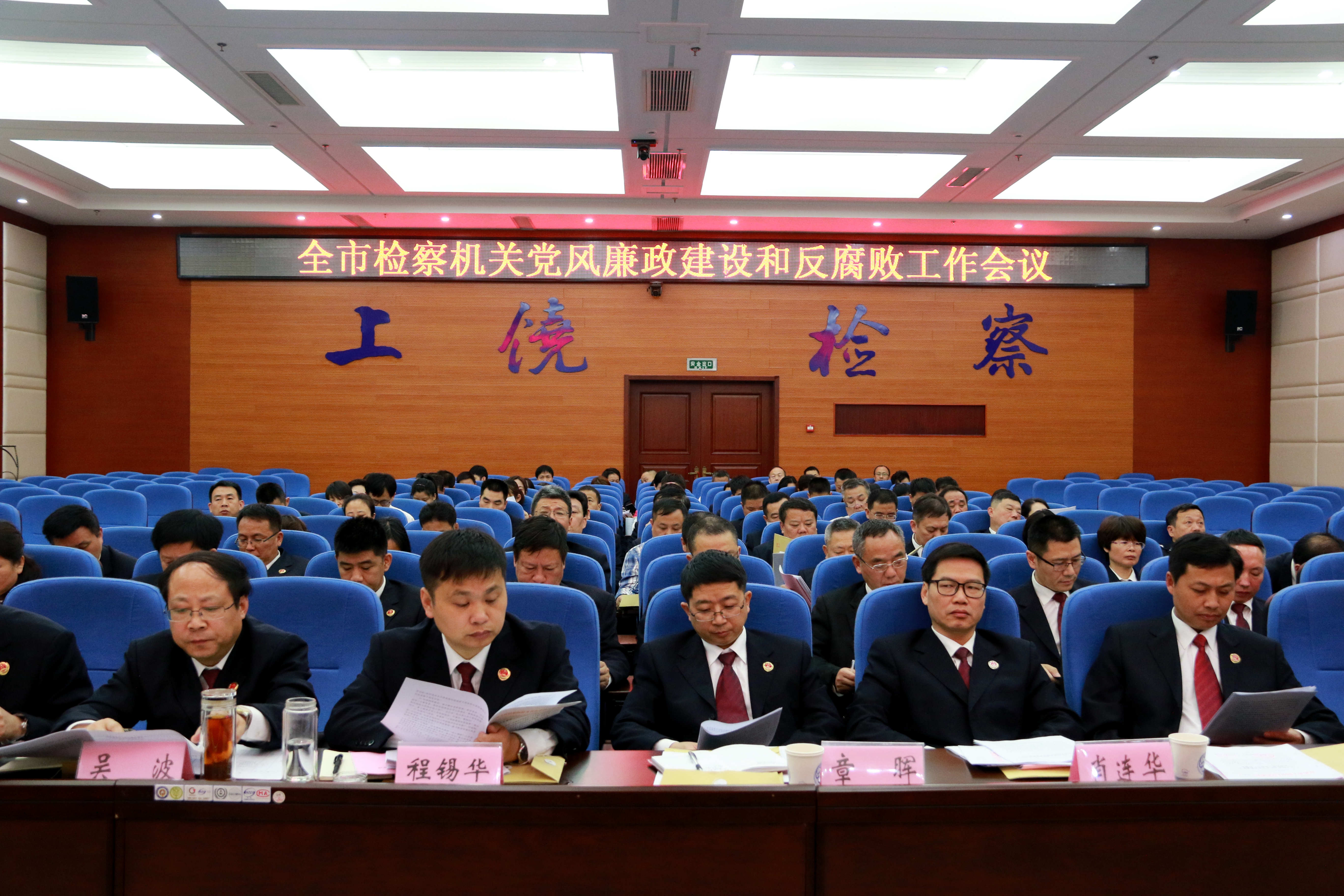 2018年4月23日,全市检察机关推进党风廉政建设和自身反腐败工作在上饶召开,并以电视电话会议形式开到全市各基层检察院。会议以习近平新时代中国特色社会主义思想为指导,深入学习贯彻党的十九大精神和中央纪委二次全会以及全国、全省检察机关党风廉政建设和反腐败工作会议、省纪委十四届三次全会、市纪委四届三次全会精神,回顾总结2017年全市检察机关党风廉政建设和自身反腐败工作,研究部署2018年工作任务。