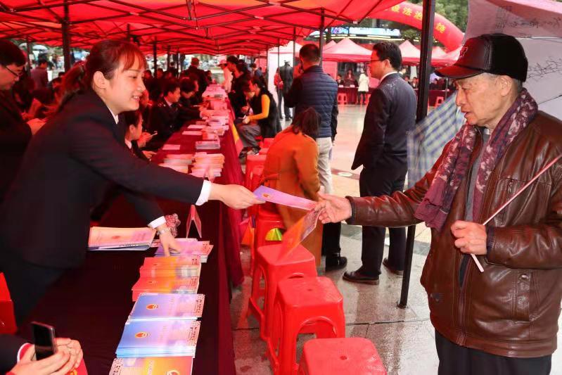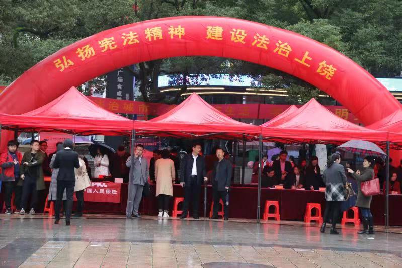 2018年12月4日,是第五个国家宪法日,上饶市院组织干警参加市普法办组织的宪法宣传日活动。在宣传点,市检察院的法治宣传展板和法治宣传册吸引了不少市民驻足观看咨询。市院干警不仅向过往市民发放了《宪法》单行本、《公益诉讼宣传资料》、《民行检察与您零距离》、《12309检察为民新体验》等宣传资料,同时也宣讲了法律知识,为群众提供法律咨询服务,让群众近距离感受到宪法等法律的关怀。