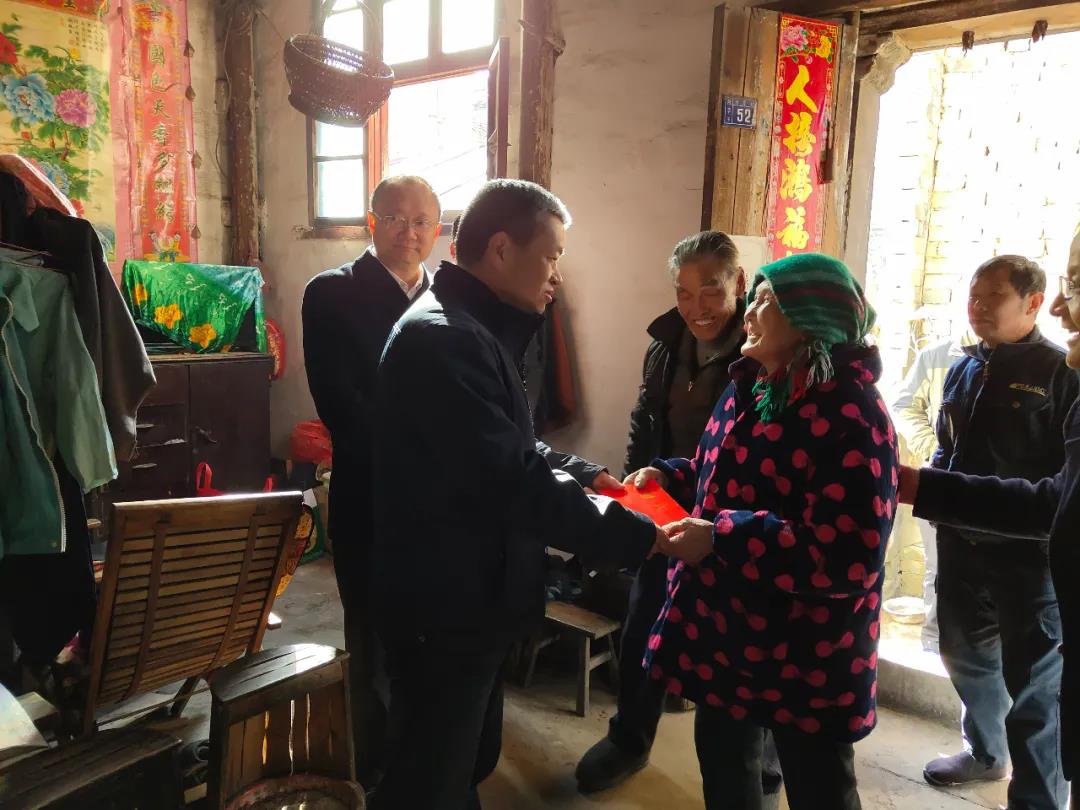 1月19日上午,上饶市人民检察院检察长黄严宏在婺源县段莘乡走访慰问困难群众、优抚对象及扶贫驻村工作队,为他们送去新春的问候和祝福,婺源县委常委、政法委书记汪学群,县人民检察院检察长龚真坚,乡村两级相关负责同志陪同走访。