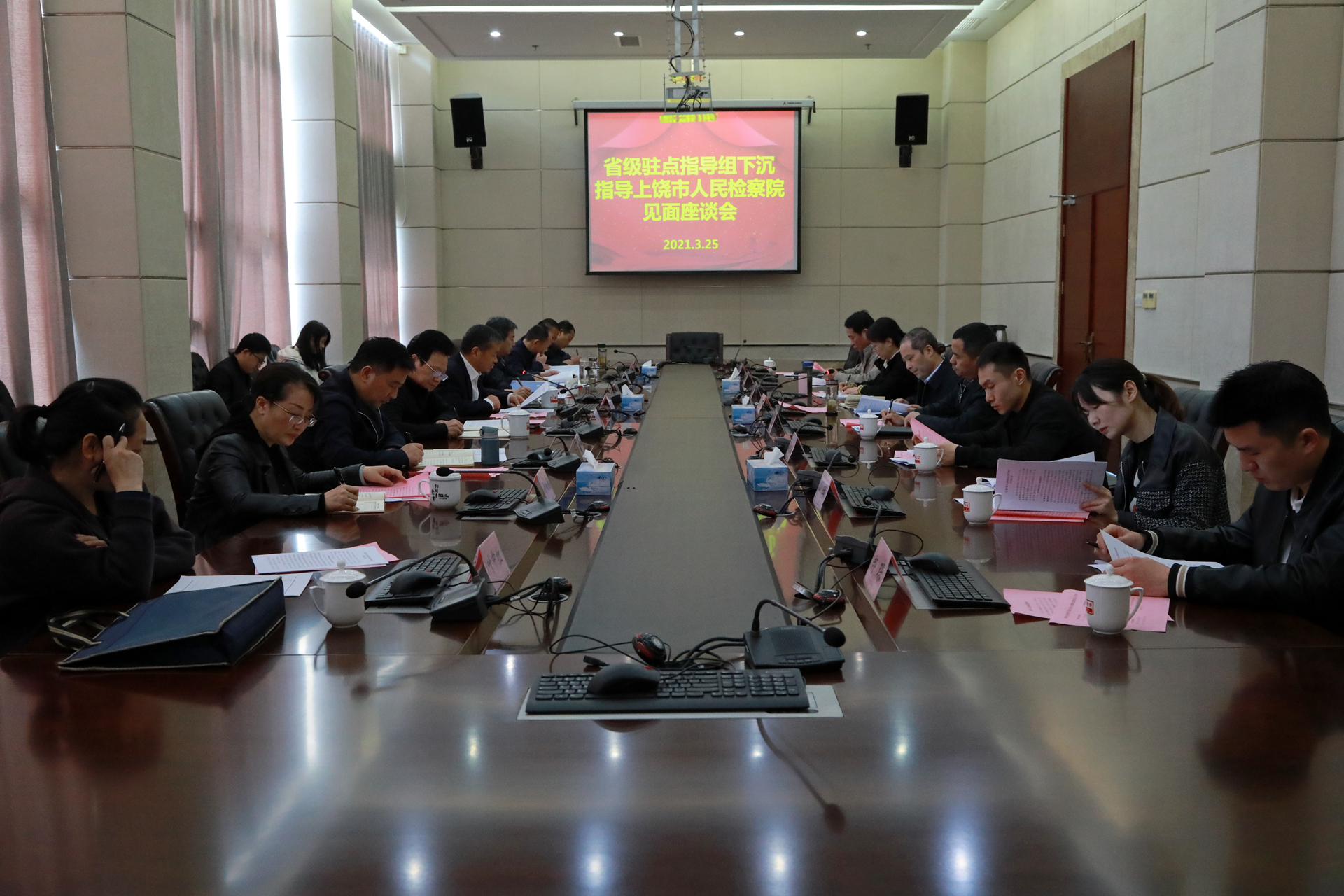 3月25日上午,省政法队伍教育整顿第九驻点指导组副组长李新乐一行6人到上饶市人民检察院下沉指导,进行现场调研,召开见面座谈会。市委政法委副书记柯维松陪同。市检察院党组书记、检察长黄严宏及院教育整顿领导小组成员参加座谈。