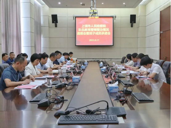 根据政法队伍教育整顿工作安排和上级有关部署要求,6月17日,上饶市人民检察院召开队伍教育整顿整治情况通报会暨班子成员承诺会。市委常委、组织部部长凌卫到会指导并讲话。省政法队伍教育整顿第九驻点指导组成员胡荷巨、郭丽及市委组织部机关党委专职副书记洪贤勇出席会议。市检察院党组书记、检察长黄严宏主持会议。