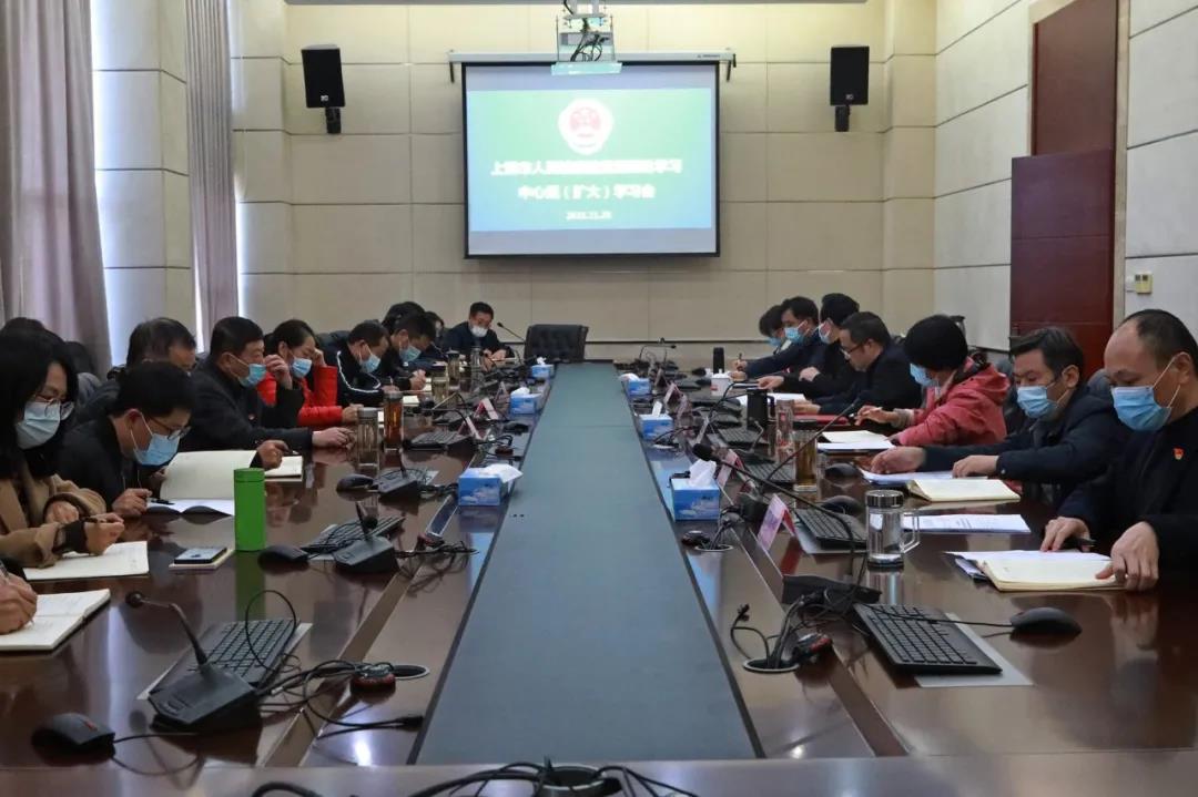 11月25日,上饶市人民检察院召开党组中心组学习(扩大)会,深入学习贯彻十九届六中全会精神和《中共中央关于党的百年奋斗重大成就和历史经验的决议》。党组书记、检察长张继田主持会议并讲话。全体院领导、县级干部及部门负责人参加会议。