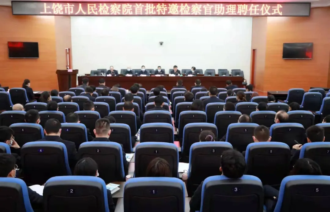 为贯彻执行最高人民检察院《行政机关专业人员兼任检察官助理工作办法(试行)》,落实江西省人民检察院关于开展行政机关专业人员兼任检察官助理的工作要求,12月10日上午,上饶市人民检察院举行首批特邀检察官助理聘任仪式,来自市自然资源局、市水利局、市林业局的4名专业人员被聘为市检察院首批特邀检察官助理。