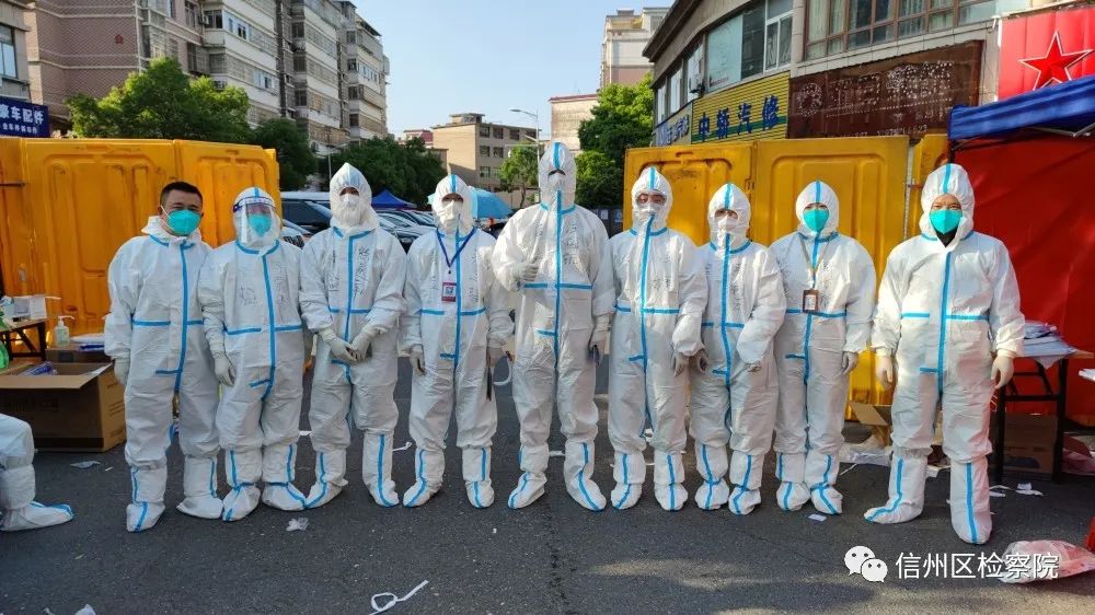 区检察院干警张华芳作为辖区内最大的核酸检测点的一名信息录入员,在连续几天30度高温的情况下,仍然穿着厚厚防护服,汗涔涔地脱下防护服时,已是体力不支,满面通红,但她仍坚持到最后,没有停歇。