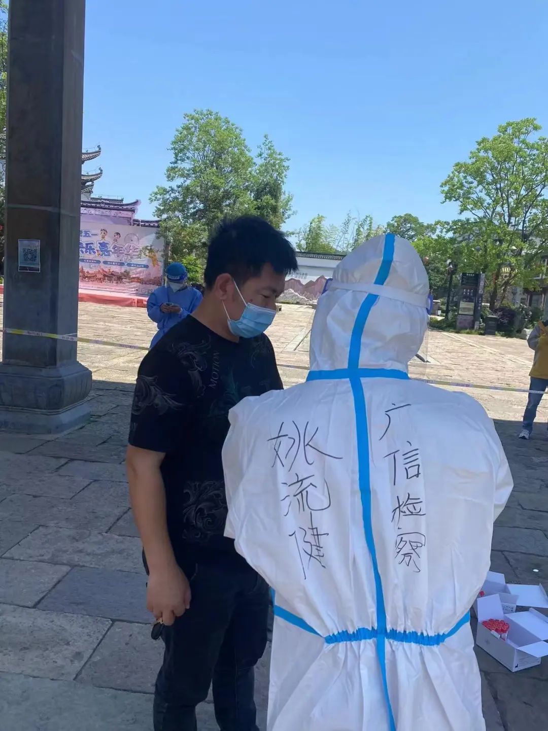 信州区检察院派出16名干警赶赴封控小区参与抗疫工作。上门协助采集核酸样本、为居民运送物资、登记人员信息、询问情况、做流调和信息录入等成为了他们每天的工作。在一次送菜时,区检察院干警熊遂南看见电梯的门口被人用粉笔写下了一句话“谢谢抗疫一线的同志”,他说:“满身的疲惫仿佛瞬间便消失了,只要群众满意,自己做什么都觉得值”。