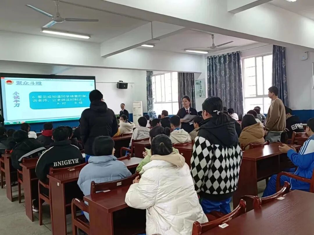 第一检察部检察官王睿婧通过播放视频、以案释法等方式,深入浅出地讲解聚众斗殴相关法律知识以及如何远离聚众斗殴。同学们对检察官提出的问题纷纷举手发言,台上台下互动频繁。课后,学校领导表示,感谢检察院送来了法律“及时雨”,让学生们知道该干什么不该干什么,避免走上违法犯罪道路。