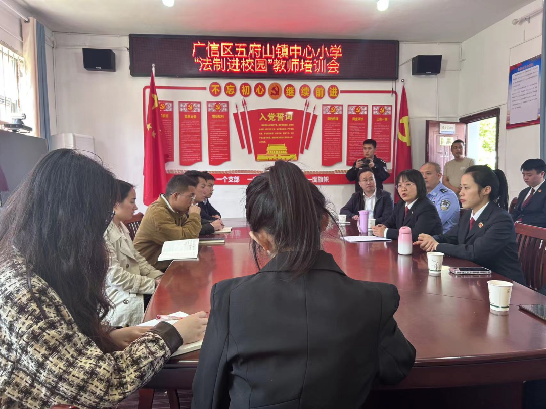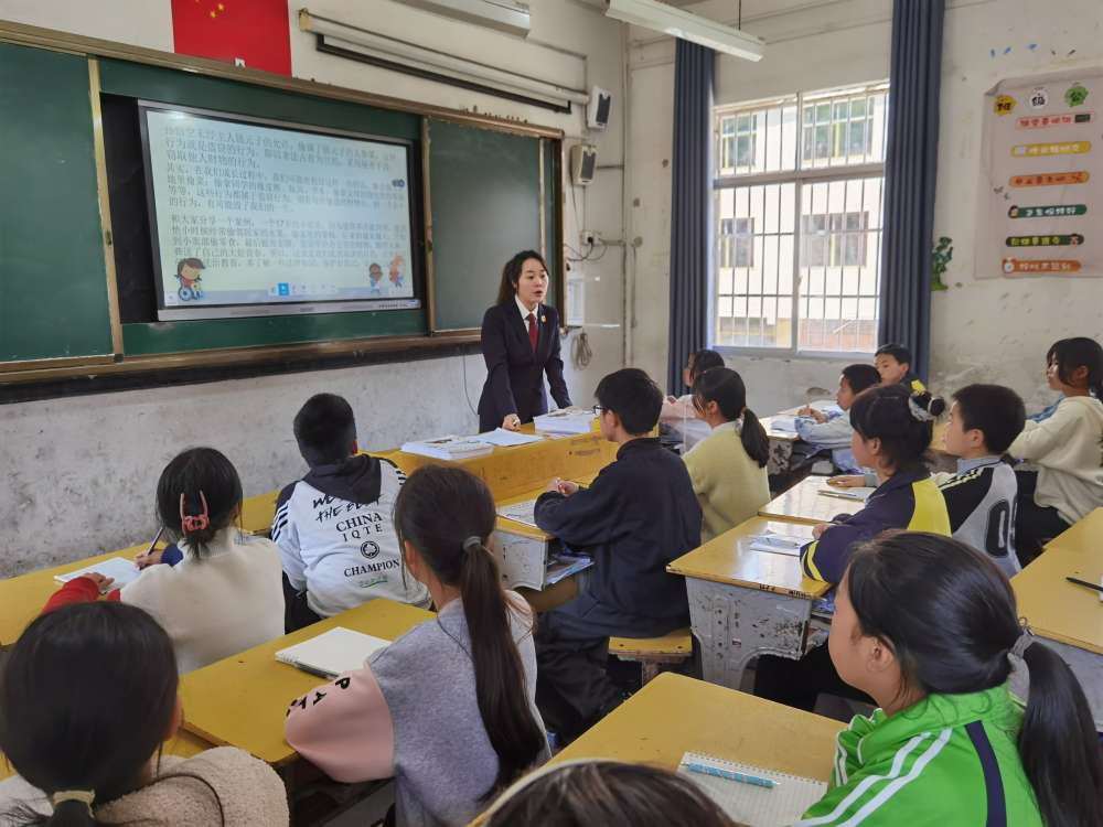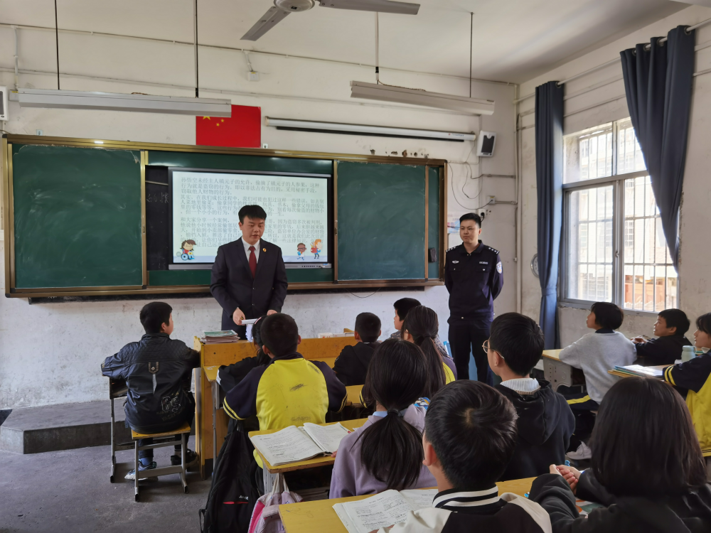 为切实解决乡村地区未成年人保护的盲点、痛点,上饶市广信区人民检察院创新法治巡讲模式,协同广信区各辖区派出所走进偏远乡村学校,深入发挥检察机关法治副校长优势,持续扩大普法受众面,积极共建平安校园、法治校园,合力把乡村学生权益保护屏障筑得更密更牢。 第一站,广信区人民检察院联合五府山派出所走进五府山镇中心小学,送法进校园。 广信区人民检察院党组成员、副检察长李洁给学校教职员工宣讲“一号检察建议”、侵害未成年人案件强制报告制度,公安机关就校园安全管理问题提出意见建议。 检察干警给五、六年级学生讲授法治课,让学生们通过生动有趣的小案例了解法律大道理。“闻道有先后,术业有专攻。检察干警来讲法治课,学生们都十分高兴。授课中增加了游戏互动,学生们能够在玩中学、学中思、思中记。”苏校长说。 接下来,上饶市广信区人民检察院将携手各方力量持续开展法治进校园活动,继续创新宣讲模式,进一步夯实乡村地区未成年人保护司法力量。