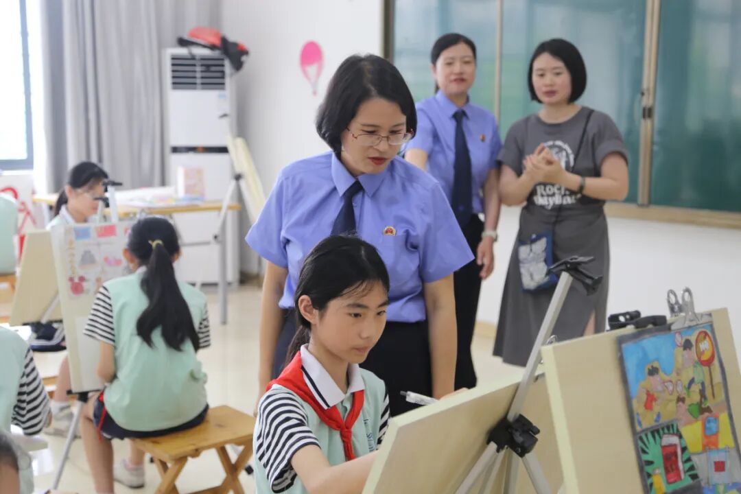 在“六一”国际儿童节到来之际,上饶市人民检察院携手玉山县人民检察院走进玉山县东城小学,举办“未成年人法治手绘画廊暨法治进校园”活动。活动邀请上饶幼儿高等专科师范学院副教授、上饶市美术家协会副主席胡黎明参加。