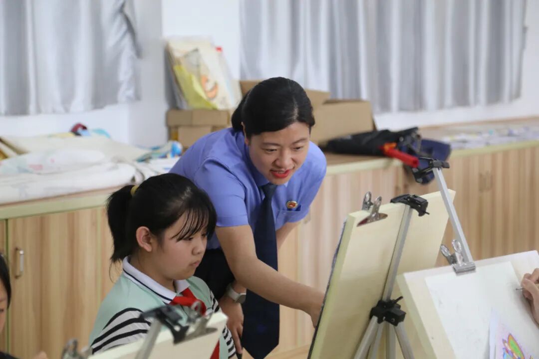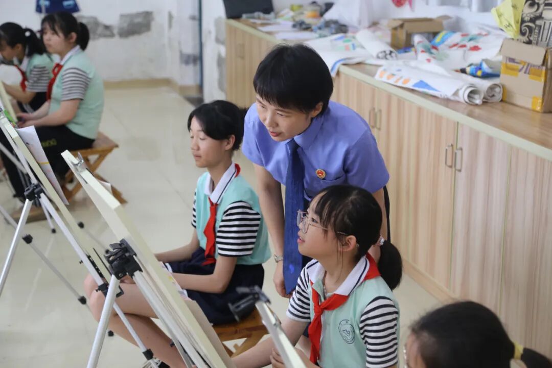 活动中,小画家们纷纷用自己的绘画方式,画出了自己心中的法治世界。有的同学将伞比作法律,寓意着法律就像伞一样保护孩子们不被日晒雨淋;有的同学用鲜红的禁止符号来表达对校园欺凌、家庭暴力的反对……