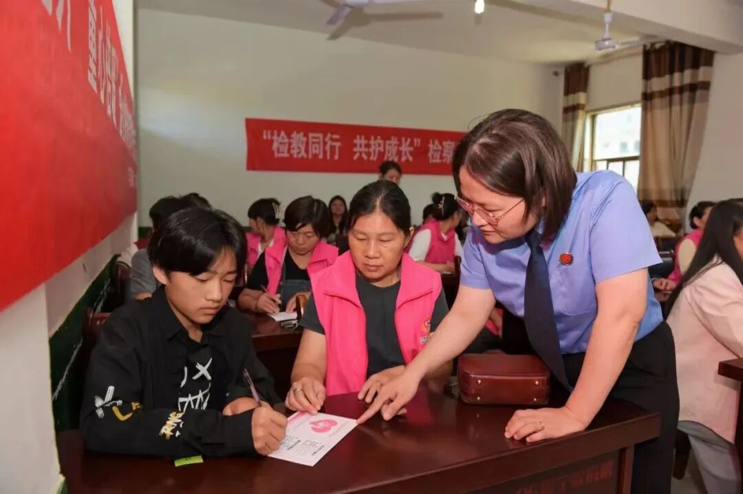 课上,检察干警从真实案例切入,以案释法,以通俗易懂的语言和喜闻乐见的互动方式现场说法,让未成年人懂得使用法律武器保护自身安全,并告诫同学们未成年人既受法律重点保护,同样受法律的规范和约束,希望同学们从自身做起,增强文明守纪意识,争做“向上、向善”的阳光好少年。