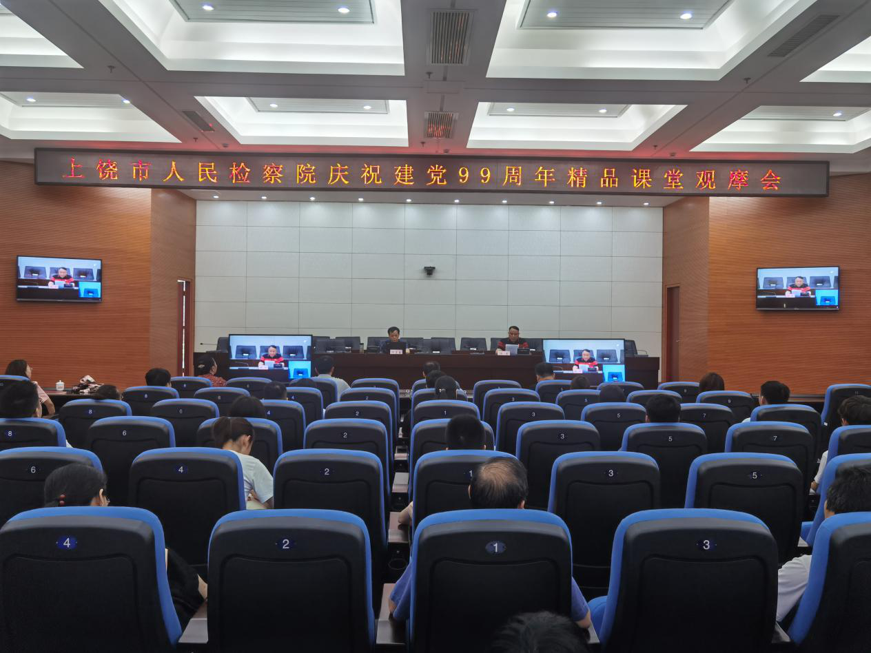在建党99周年即将来临之际,为贯彻落实中组部、省委组织部、市委组织部、市直机关工委部署开展的“党课开讲啦”活动要求,上饶市人民检察院机关党委组织基层党支部开展庆祝建党99周年精品党课观摩会。