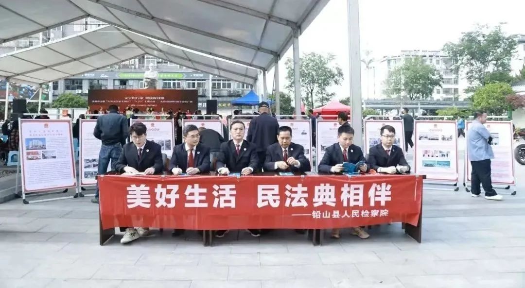 近日,铅山县人民检察院开展了“美好生活·民法典相伴”的普法宣传活动。检察干警通过悬挂宣传横幅、发放民法典相关读物、摆放宣传展架等方式向过往群众普及民法典知识。