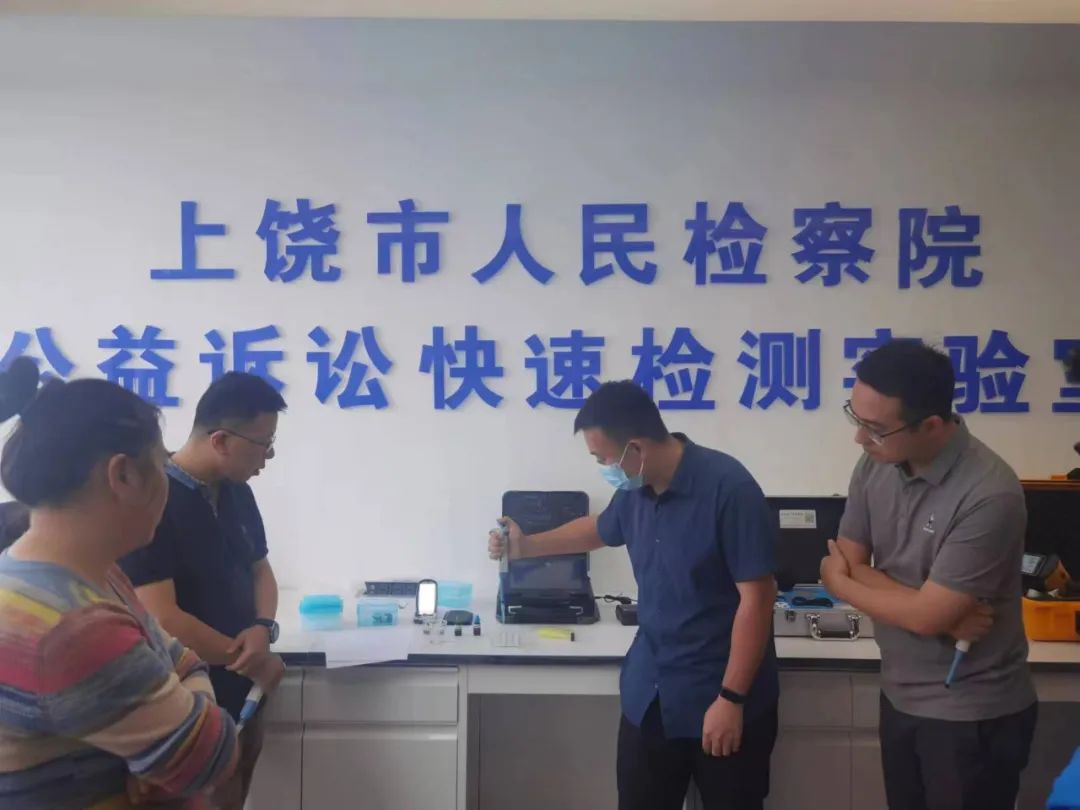 为更好践行公共利益代表职责使命,有效破解公益诉讼调查取证难题,上饶市人民检察院坚持高位推动,高标准、规范化建成公益诉讼快速检测实验室,使检察技术鉴定从二线辅助办案转向一线参与取证,成为助推公益诉讼工作的新动力。